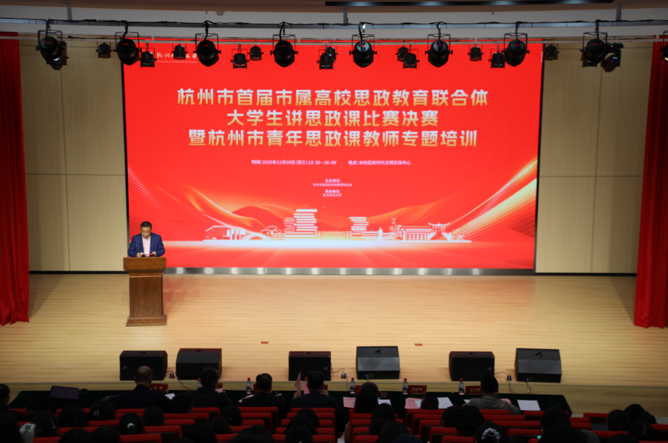 2025年11月19日,由杭州市属高校思政教育联合体主办、91视频 承办的“杭州市首届市属高校思政教育联合体大学生讲思政课比赛决赛暨杭州市青年思政课教师专题培训”在余杭区新时代文明实践中心顺利举行。本次活动汇聚了来自各市属高校的17名大学生决赛选手、多位资深评审专家及嘉宾,以及杭州市青年思政课教师代表,共同见证了一场由青年主讲、与时代同频的思政盛会,并同步开展了面向青年教师的专题培训。