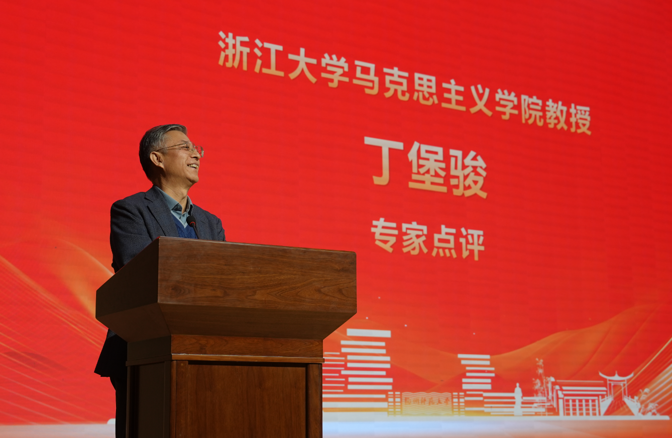 赛事尾声,浙江大学91视频 丁堡骏教授与杭州电子科技大学91视频 王海稳教授对选手表现作了精准而深入的点评。两位专家一致高度肯定了参赛学子们所展现出的扎实理论功底、开阔时代视野与真挚家国情怀,并从教学实效角度提出建议:优秀的思政课讲授关键在于“讲”而非“背”,鼓励同学们在未来实践中,力求选题“小而精”,做到“以小见大”;在表达上要提升感染力与互动性,让深刻的理论借助生动的形式真正“入耳、入脑、入心”,为同学们未来更好地传播理论指明了提升方向。